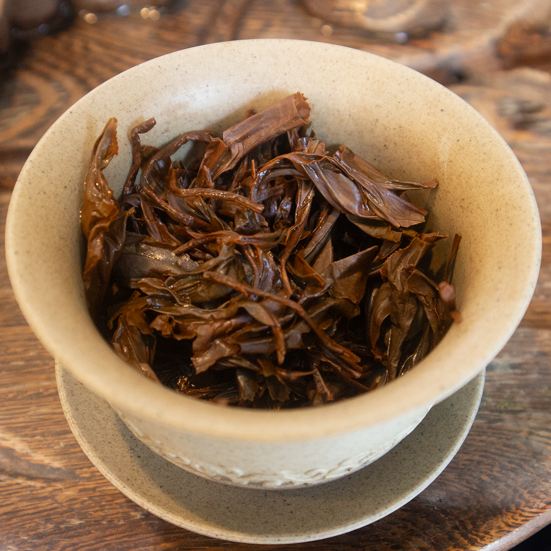 The dry leaves have a strong jam-like fruity aroma with a slightly cheesy funk to it, remeniscent of some kind of exotic incense or perfume. The funk fades as infusions go on while the berry-like jam aroma reaches a more generic fruity sweetness. Tannins are strong even in short brews and the tea has a decent head feeling and stomach effect as you’d expect from it’s assamica roots. Short brews and slightly lower temps are preferred to appreciate the strong flavours of the tea without too much bitterness from the tannins. Will brew for 5 brews at least and keep going from there maintaining strength but losing complexity. I did find visible bug bites on some leaves and the plant’s response to this is likely adding to some of the sweetness of the tea.