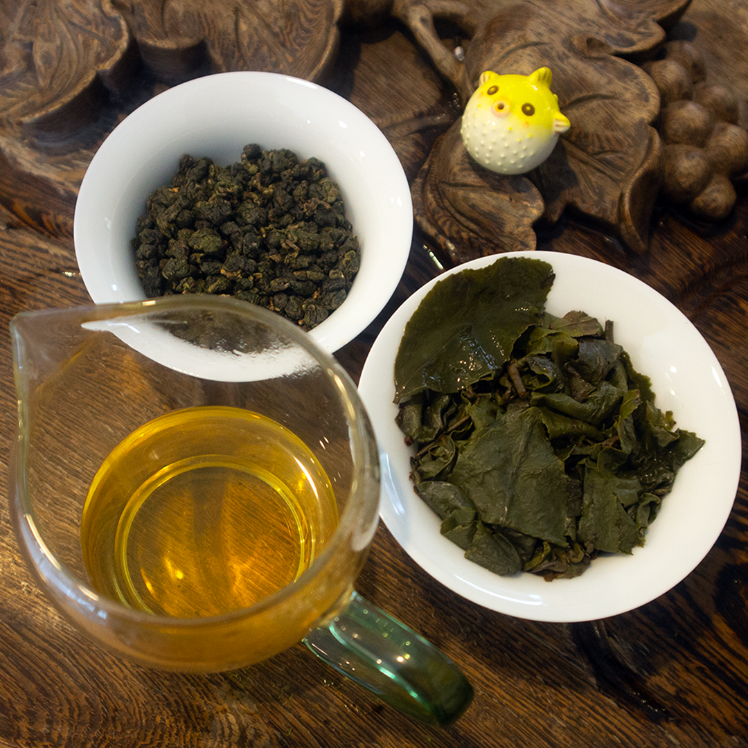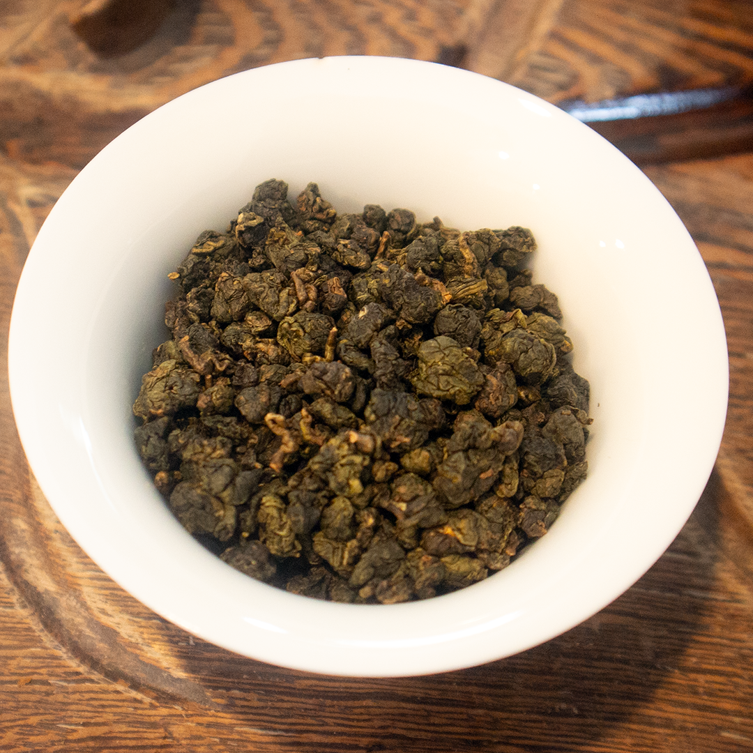 This is a Jin Xuan (Golden Daylily) cultivar oolong grown in a high mountain region in northwestern Vietnam near the Yunnan border, processed in the Dong Ding style and roasted in Nantou, Taiwan. There’s limited growing area in Taiwan so often leaves from tea gardens in Vietnam are imported and processed as Taiwanese Oolong. This tea is about 35% oxidized, ball rolled, and machine-roasted on the darker side.